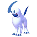 Swift as the wind, Absol races through fields and mountains. Its curved, bow-like horn is acutely sensitive to the warning signs of natural disasters.