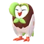 At a distance, it launches its sharp feathers while flying about. If the enemy gets too close, Rowlet switches tactics and delivers vicious kicks.